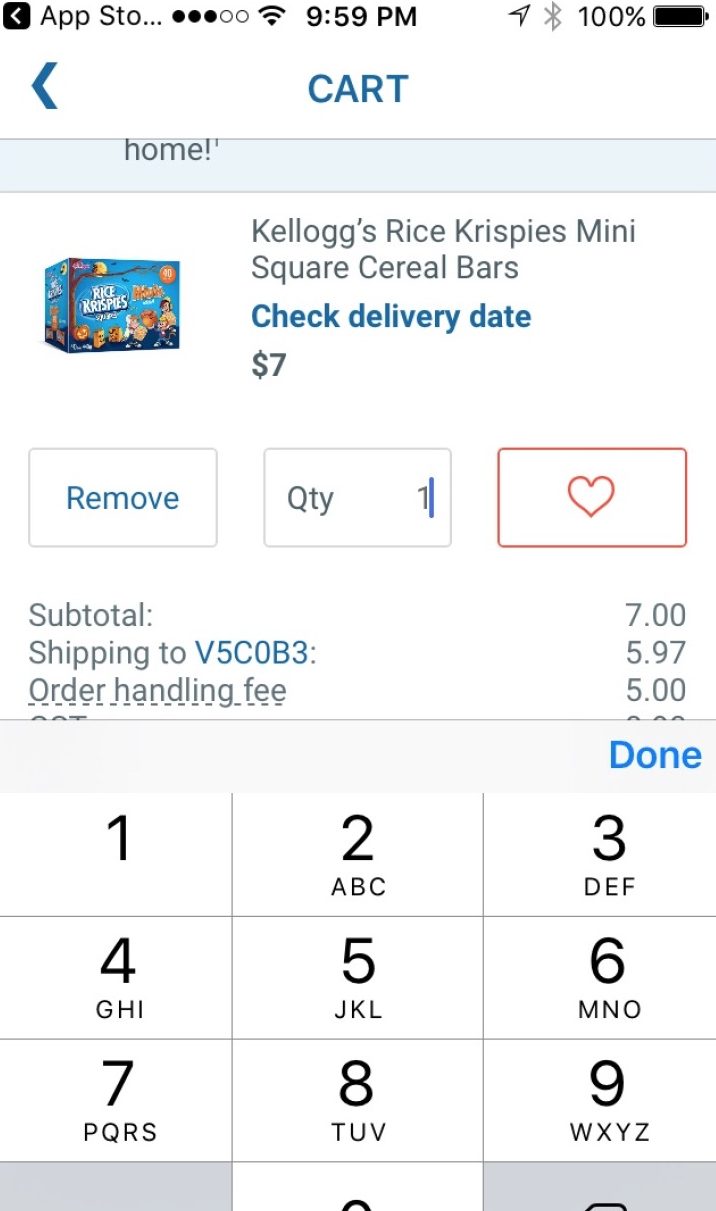 在Walmart應用程序中,購物者可以直接在結帳頁面上直接編輯所購買商品的數量,而無需返回購買流程中的任何前一頁。因此,想要改變購買多少物品的顧客的購物者具有完全的自由和控制,以在他們點擊結賬按鈕之前的最后時刻調整數量到他們的喜好。