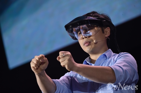 Meta是我和我的合作伙伴創(chuàng)造的公司,這是第一個3D手勢的操縱眼鏡,你的身體就是你的輸入方式。在Meta這家公司我們關(guān)注增強現(xiàn)實眼鏡,這能夠改變我們看待世界的方式。